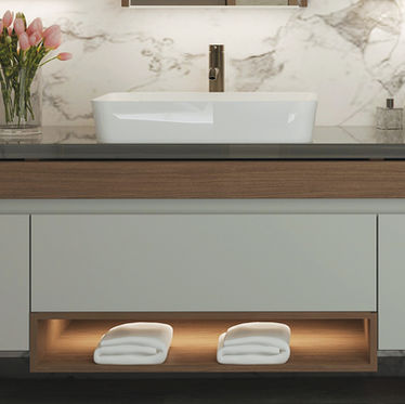 Mermerin zarafeti, ahşabın sıcaklığı ve minimal tasarımın dinginliğiyle güne huzurlu bir başlangıç yapın.